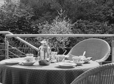 vergrößerte Fenster und eine aufgeständerte Terrasse intensivieren Innen- und Außenbezug.