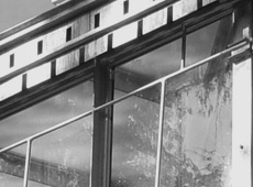 Die Kleinteiligkeit wurde durch eine vorgehängte, zum Putzen hochklappbare, Stahlstruktur nachempfunden.