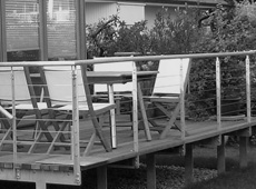 Auf einer Unterkonstruktion aus verzinkten Stahlteilen entstand ein Holzdeck mit Blick auf den nahen See.
