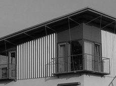 Unten Werkstatt und Lager, darüber ein Bürotrakt in Holzrahmenbauweise,