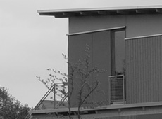 Trotz geringen Budgets behauptet sich das Gebäude in dem Gemisch eines Neubaugebietes